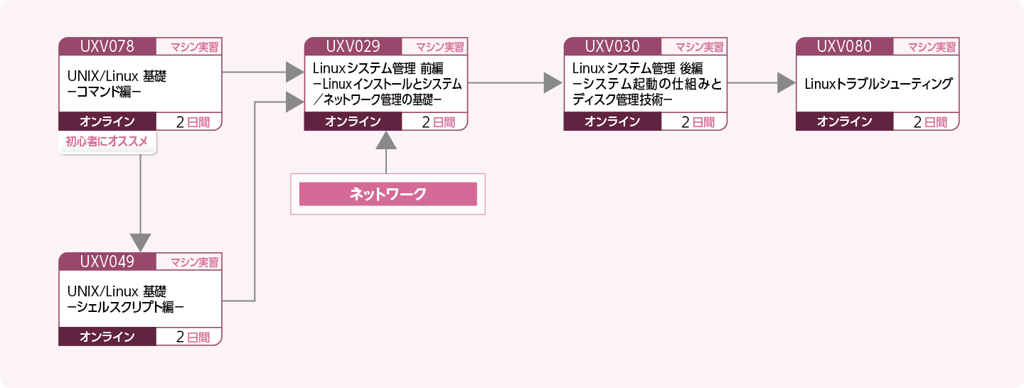 Linuxを使用してシステムを構築・運用・管理する方のコースフロー