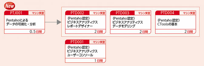 BI※プラットフォームであるPentahoの研修として、データの加工・統合、またはデータの可視化・分析に利用する際の考え方やポイントを修得できる2種類の研修コースを新たに開催いたします。