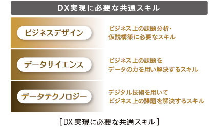 DXを推進する現場やソリューションを提供する組織など、DXへの関わり方によって、重視するスキルが異なります。